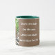 A motivational coffee mug that supports wildlife conservation. This little orangutan grabbed a water bottle away from one of the caretakers in Orangutan Foundation International's sanctuary and ran to the swamp, where he quickly demonstrated that he knew how to hold a bottle under water and fill it up with more of the beverage of his choice. Shortly thereafter, he tired of the bottle and returned it like a good boy. In a couple of years this orangutan will be old enough to be released back into protected areas of the wilderness with thousands of other formerly rescued orangutans, all "graduates" of OFI's jungle school and care centre. Photographs and original poem copyright 2009: Rebecca Reeder Hunt The artist is a volunteer at this sanctuary on the island of Borneo and donates her profits to support OFI's decades-long work of saving orangutans and their habitat.