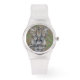 The little baby cougar on this original watch looks a little bit nervous about scrambling into the big wide world through the jungle foliage. His cute kitten expression and beautiful blue eyes was irresistible to me, I just had to paint him, I used a soft pastel medium because I love the way the medium can capture the brown and black colours and tones of the cougar stripes in his fur, it also accentuates every little cougar cat hair of his amazing coat. This great watch with its original cougar cub picture will bring a smile to the face of everyone who has a soft spot for cute baby animals, especially baby wildlife animals. This original wildlife art watch makes a great gift for the special people in your life or maybe it’s a little piece of original art for yourself. This is a customisable watch, you can personalise it with your own text and image. This cute little cougar kitten was painted from a photo provided with kind permission from Big cat rescue and he's part of my wildlife paintings collection.