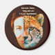 " If We Save Our Endangered Species, We Save Ourselves!" This powerful statement was written especially for this fantasy design featuring half a human face with half a Cheetah face merged as if becoming ONE.
