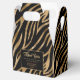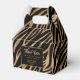 Embrace your wild side with this glam safari-themed bachelorette favour box. Featuring a black and gold zebra pattern background and gold edged frame for your text. this tag exudes exotic luxury. The frame highlights 'Thank You, we're wildly happy you're here” typography in shiny gold lettering. Fully customisable to suit your safari party or bachelorette weekend, this favour box is ideal for a glamourous safari, jungle, or animal print-themed celebration. Search ID1151 to see other products in this fun bachelorette design set.