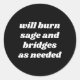 Will Burn Sage And Bridges As Needed Classic Round Sticker