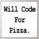 Show off that you are a computer coder/programmer AND that you will code for pizza with this funny design.