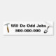 Are you or would you like to be in business for yourself doing odd jobs? Let people know your handyman skills are available. Personalise by easily changing to your phone number.