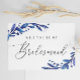 Will you be my bridesmaid. Blue navy floral script Invitation Postcard