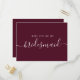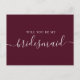Will you be my bridesmaid. Elegant burgundy script Invitation Postcard