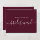 Elegant simple minimalist script "Will you be my bridesmaid?" card in shades of burgundy and plum colours.