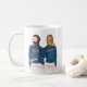 Pretty "Will you be my Bridesmaid" coffee or tea mug. Features the back of a bride and her bridesmaid or maid of honour in jean jackets with their names. A great way to ask your friend to be in the wedding party. Wording can be changed. If you need a different hair colour, please contact me at tkatz@me.com