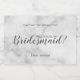 featuring wording "Will You Be My Bridesmaid?" in grey modern script font style with details in grey modern sans serif font on white marble background.