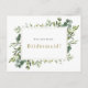 Ask your friends and family to be a part of your wedding with this floral "Will You Be My Bridesmaid" card featuring botanical green elements and watercolor eucalyptus leaves. Matching items are available. Bridal Party Proposal card