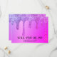 Will you be my Bridesmaid? Bridal shower. Purple, glitter drips, sparkle, whimsical, elegant, modern, script, Wedding save the date invitations. Please personalise it with your details.
