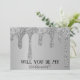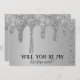 Will you be my Bridesmaid? Bridal shower. Silver, glitter drips, sparkle, whimsical, elegant, modern, script, Wedding save the date invitations. Please personalise it with your details.