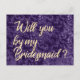 Will You Be My Bridesmaid Violet Velvet Gold Faux Invitation Postcard