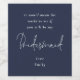 A stylish way to ask this very important question in navy blue and white. Bridesmaid is in a handwriting style white script in the centre and the rest of the text you can easily personalise. The background can be changed to a different colour if you wish via the customise further option.
