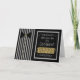 Will You Be My Coin Bearer Request Card features black and grey pinstripes, bow tie, gold buttons and a gold tray with coins marked with the traditional words.