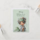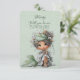 A beautiful Flower Girl proposal card with a young cartoon girl sitting among falling green leaves.
