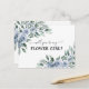 Design features elegant watercolor greenery with boho dusty blue rose floral elements. Design also features a modern typography font layout.