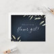 Modern "Will you be my flower girl?" script and minimal watercolor botanical foliage greenery design on moody navy blue background, simple and elegant, great for modern wedding, rustic wedding, and botanical garden wedding in summer and fall.