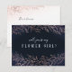Botanical foliage floral design in faux rose gold colour on dark navy blue background, modern & elegant, great "Will you be my flower girl" bridesmaid proposal card for modern wedding and winter wedding.