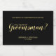 featuring wording "Will You Be My Groomsman?" in gold modern script font style with details in gold modern sans serif font on black background.