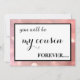 This 5" x 7" beautiful Will you be my bridesmaid? invitation card. This is best for the bride. If you looking at asking someone to be yourbridesmaid for your future wedding, then why not choose this bridesmaid cards. This customised invitation card will make your friend, sister cousin, nephew, daughter or whoever else you choose feel that extra special. This invitation is easily personalised by clicking on the customise it button under the image where you will be able to change the text, font and size. You can invite your best buddies in style with these classy invitations. It is suitable for the flower girl,maid of honour or for matron of honour. Send them this bridesmaid card.