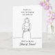 A sweet sentimental card asking someone to be your maid of honor for your wedding. This card is decorated with simple elegant line art illustrating a maid of honor, wedding dress, bouquet of lowers and high heels in line art. Inside is a cute witty funny quote.
