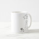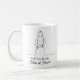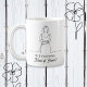 A sweet sentimental coffee mug asking someone to be your maid of honor for your wedding. This mug is decorated with simple elegant line art illustrating a maid of honor, wedding dress, bouquet of flowers and high heels in line art. Inside is a cute witty funny quote.