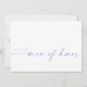 This minimalist design is perfect for the modern bride! Featuring a handwritten signature script paired with a simple sans-serif font in a dusty blue for a subtle pop of colour. Personalise with your own message on the back, or order them blank and handwrite your message. Check out the store for matching Bridesmaid, Maid of Honour, and Matron of Honour cards!