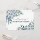 Design features elegant watercolor greenery with boho dusty blue rose floral elements. Design also features a modern typography font layout.