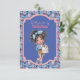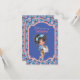 This cute card featuring a teenager holding a card on a plain blue background. The back of
