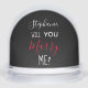 A great way to pop the question! Fun snow globe "Will you marry me?" text (front), and custom photo (back). Bold Black and White with Red Accents. Personalise with her name and add the date to the back so she always remembers your Big Day! Valentine's Day and Christmas are two great days to pop the question to your loved one.