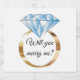 An illustration of a diamond wedding ring with a gold band, and the words Will You Marry Me inside the ring. A fun and unique way to pop the question!