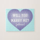 Looking for a special way to pop the question? Surprise your sweetheart this Valentine's day (or any day!) with a unique proposal in the form of a jigsaw puzzle! This puzzle features a periwinkle heart on a light blue background overlaid by the template text, "Will you marry me?"