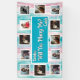 Personalised photos proposal banner. Will you marry me sign. Romantic proposal idea! Blue and pink striped background. Romantic way to propose on Valentine's Day.