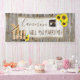 Marriage proposal banner. Personalised will you marry me sign. Rustic Wood Background with pretty yellow sunflowers and him and hers cowboy boots and hats.Romantic ways to propose. Add your photo to this banner in the personalise area.