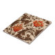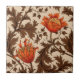 Ceramic tile in a vintage William Morris floral damask pattern of anemone flowers and leaves, digitally enhanced and coloured - deep chocolate brown leaves, and flowers in shades of rust orange and soft gold on a medium beige background
