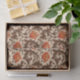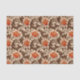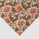 Tissue paper in a vintage William Morris floral damask pattern of anemone flowers and leaves, digitally enhanced and coloured - deep chocolate brown leaves, and flowers in shades of rust orange and soft gold on a medium beige background