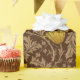 Wrapping paper in a vintage William Morris floral damask pattern of anemone flowers and leaves, digitally enhanced and coloured - light cocoa brown leaves, and flowers in shades of deep mustard gold / yellow on a dark chocolate brown background