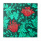 Ceramic tile in a vintage William Morris floral damask pattern of anemone flowers and leaves, digitally enhanced and coloured - turquoise / peacock leaves, and flowers in shades of deep red and coral on a dark teal green background