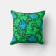 Throw pillow in a vintage William Morris floral damask pattern of anemone flowers and leaves, digitally enhanced and coloured - emerald green leaves, and flowers in shades of cerulean and cobalt blue on a dark emerald green background