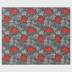 Wrapping paper in a vintage William Morris floral damask pattern of anemone flowers and leaves, digitally enhanced and coloured - light silver grey / grey leaves, and flowers in shades of deep lipstick red on a dark graphite grey background