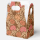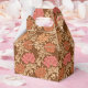 Favour box in a vintage William Morris, Art Nouveau, floral print of stylised chrysanthemums, digitally enhanced and coloured, in tan, rust terracotta, and coral, on a deep chocolate brown background