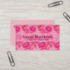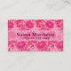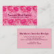 Business card in a vintage William Morris, Art Nouveau, floral print of stylised chrysanthemums, digitally enhanced and coloured, in shades of deep fuchsia pink, azalea pink, and burgundy, on a pale pink background