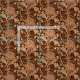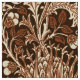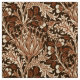 Fabric in a vintage William Morris damask pattern of artichoke plants and leaves, in warm brown and beige, against a dark chocolate brown background, digitally enhanced and coloured
