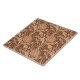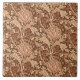 Ceramic tile in a vintage William Morris damask pattern of artichoke plants and leaves, in warm brown and beige, against a dark chocolate brown background, digitally enhanced and coloured