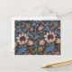 William Morris produced many vintage floral textile designs in the 1800s, and the Evenlode pattern is a drawing of the flower pattern.. The vintage William Morris Evenlode wallpaper pattern is an ornate floral design with flowers and leaves in a lovely old fashioned pink, blue, and brown colour.