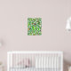 Poster in a William Morris Art Nouveau pattern of lemons, pomegranates, and peaches, with blossoms, on leafy branches - fruit in lime green and coral orange, with green leaves, against a patterned background
