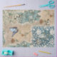 Made from 3 butterfly paintings by Audrey Jeanne and 4 original art paintings and sketches from William Morris including a beautiful botanical tulip floral illustration, tan and brown ephemera style foliage, an several partially painted floral patterns in teal, aqua blue green and soft white. Multiple variations on this collage are available to us for a large surface such as dressers, armoires, table tops and similar decorative furniture use. Ideal for a modern vintage style Cottagecore design aesthetic. These were graphically designed into a complex collage by internationally licensed artist and designer, Audrey Jeanne Roberts, copyright.