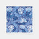 Paper napkins in a William Morris Art Nouveau textile pattern, digitally enhanced and coloured - stylised peonies and leaves in shades of cobalt blue, light sky blue, and white, against a dark indigo blue background
