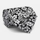 Tie in a vintage William Morris floral damask pattern, digitally enhanced and coloured, in white on a black background