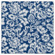 Fabric in a vintage William Morris floral damask pattern, digitally enhanced and coloured, in white on a deep cobalt blue background